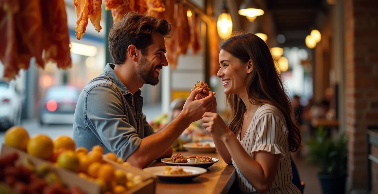 Pero este método a menudo olvida lo esencial. Se enfoca en el «qué» y el «dónde», ignorando el «porqué» y el «cómo». Se corre el riesgo de convertir el viaje en una maratón de reservas en lugar de una inmersión sensorial. La verdadera maestría de una luna de miel gastronómica no reside en tachar nombres de una lista, sino en saber orquestar los momentos, en entender la gramática del sabor que une una sencilla gilda con un complejo plato de vanguardia. Se trata de una curaduría consciente de momentos que forjarán vuestra memoria gustativa compartida.