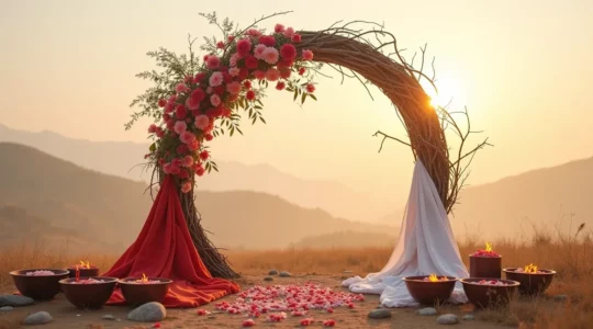 Los rituales védicos en India presentan una complejidad ceremonial asombrosa, con cada gesto cargado de significado milenario. El fuego sagrado, las circunvalaciones rituales, los nudos que atan físicamente a los contrayentes: cada elemento narra una cosmología del compromiso. Muchas familias mantienen la tradición de «puertas abiertas», permitiendo que viajeros respetuosos observen ceremonias en templos o, en contextos rurales, ofreciendo alojamiento en aldeas donde podéis presenciar celebraciones auténticas.