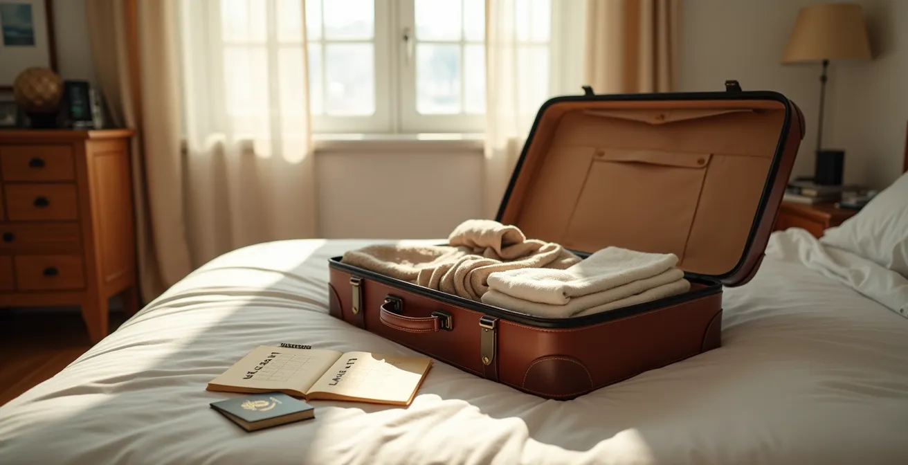 La sensación es universal: llegas a tu destino de luna de miel, abres la maleta y un sudor frío te recorre la espalda. Has olvidado el cargador del móvil. O peor, ese medicamento esencial. A pesar de haber repasado mentalmente mil veces qué llevar, algo siempre se queda atrás. La ansiedad pre-viaje no nace del miedo a volar, sino del pánico a estos pequeños desastres logísticos. El consejo que todos dan, «haz una lista antes de empacar», suena a remedio de abuela, una platitud tan obvia que parece inútil.